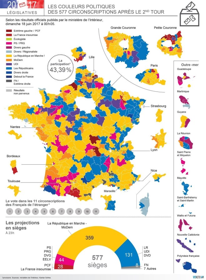 Si l’on ajoute le fait que le recours au vote blanc ou nul a été particulièrement fort en 2017, le tableau d’une chute considérable de la participation électorale et la hausse de l’expression du non-choix fait de cette séquence 2017 une édition inédite de l’histoire électorale française.